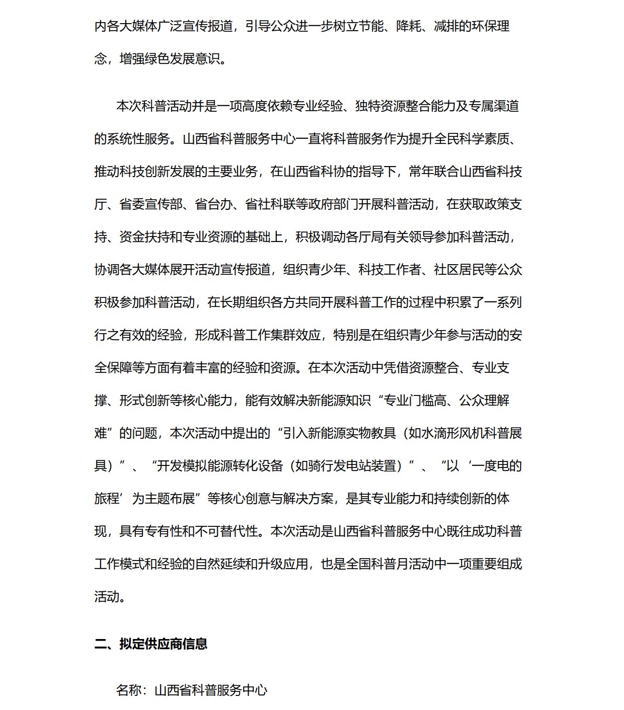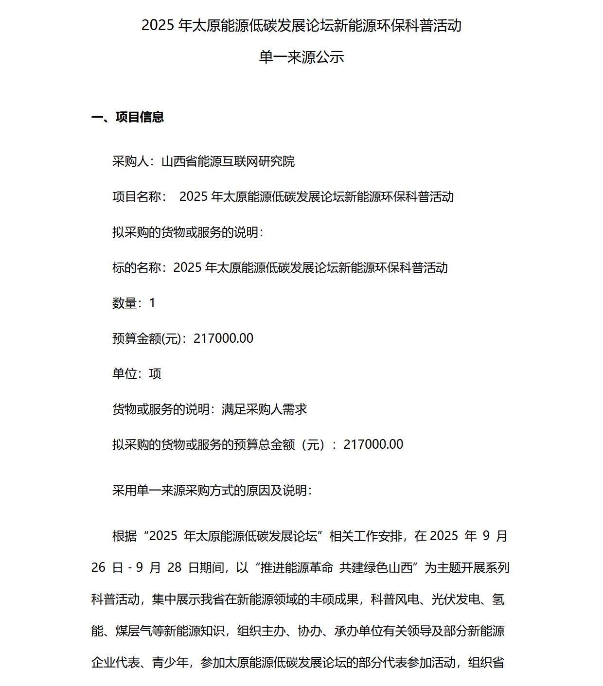 2025年太原能源低碳发展论坛新能源环保科普活动单一来源公示
