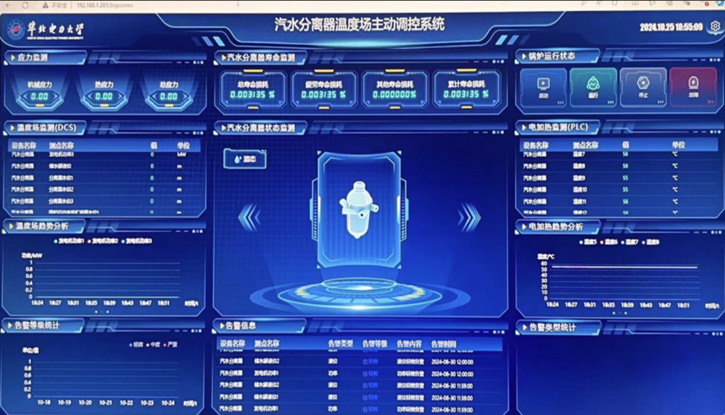 研发出世界首台超临界机组燃煤锅炉汽水分离器温度场主动调控装置和系统,并在华电新疆五彩湾发电有限公司2#机组投入现场运行。该装置是国家重点研发计划项目“超(超)临界机组宽负荷快速灵活调峰关键技术”的标志性成果,通过锅炉厚壁部件的温度场调控和应力补偿,保障燃煤发电机组的安全、高效快速启停和变负荷运行。