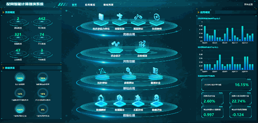 以电网资源业务中台和企业级实时量测中心应用为基础,研发了配电网智能计算推演系统,可提升最小化采集下的配电网参数、拓扑、状态以及未来态势透明化感知水平,有效提升了配电网可观测、可描述、可计算能力。目前开发的数据接入、数据治理以及4项基础功能模块,已在山东、冀北、上海、河北、安徽、辽宁、天津、江苏、湖北 等9家省公司完成了部署、调试与测试工作。